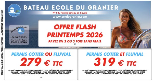En ce qui nous concerne les réponses sont simples, dans notre établissement, la formation théorique se déroule dans un Hôtel de Chambery ou nous avons un agrément depuis longtemps. La formation pratique se déroule sur le lac du Bourget donc localement. La formation pratique peut être réalisée avant d'avoir obtenu le code et dans des délais assez rapide. Enfin nos contrats sont valables sur de longues durées afin que chacun puisse profiter de ce qu'il a payé.